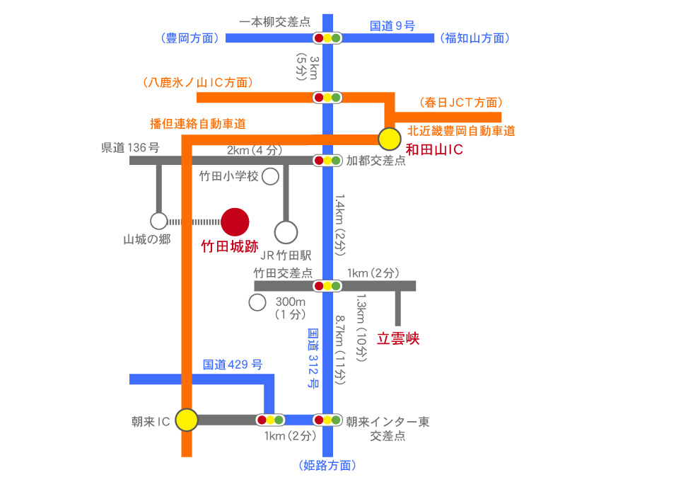 ※1.一般車両は「山城の郷」から先の竹田城跡方向へは進入できません。